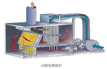 催化燃烧装置主要是利用催化剂来改变反应条件以达到在较低温度下去除有机物的净化装置,催化燃烧装置内所发生的气—固相催化反应的实质是活性氧参与的深度氧化作用。在催化燃烧过程中,催化剂用来降低化学反应的活化能。借助催化剂的作用使有机废气在较低的凄然温度条件下,发生无焰燃烧,并将其氧化分解为无害的CO2和H2O,从而达到净化有机废气的目的。