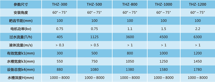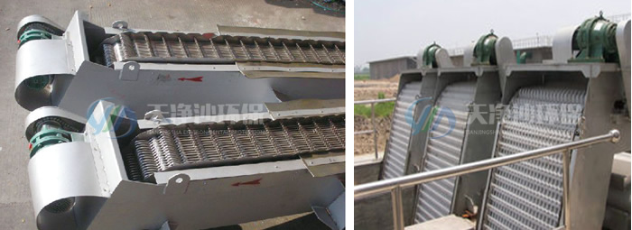 一般用作污水预处理的第二道(或第二道以后)格栅,做细格栅用,最小间隙可达3mm。当单台宽度较大(B>1500mm)时,应考虑制作成并联机(即一个驱动装置驱动多组格栅)。